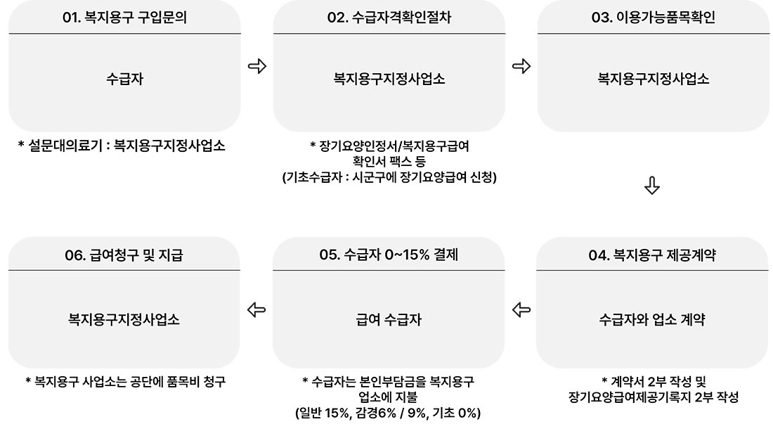 - · 수급자의 신체 상태에 따라 복지용구 일부 품목의 구입·대여가 제한될 수 있음